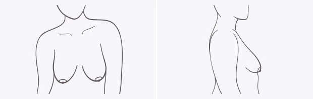 The tissue for this shape is dense and close-set to the body. If you're Low Profile, your breasts likely have less fullness. While it can vary, typically, your nipples will point forward.