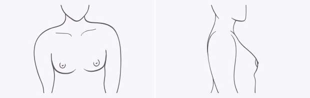 The tissue for this shape is dense and close-set to the body. If you're Low Profile, your breasts likely have less fullness. While it can vary, typically, your nipples will point forward.